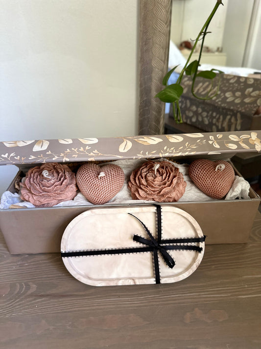 Elegant 3x heart shaped candle (3pcs) Large ceramic tray, Custom Color, Soy Wax, Housewarming Gift, Gift Favors, Flowers candle, Valentine's Day Gift, Home Decor • • • • • • #homedecor #handmadehomedecor #decorativecandles #candlelover #giftideas #soycand